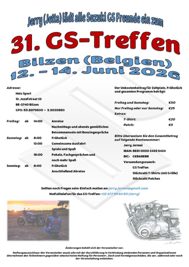 alle weiteren Infos in Facebook in der Gruppe Die Suzuki GS Fahrer und im Forum